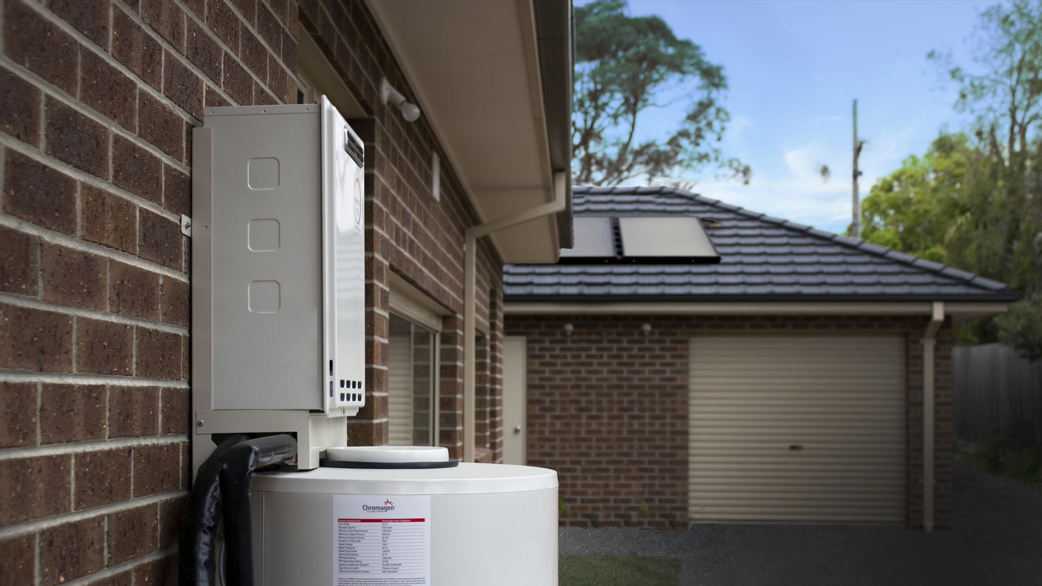 Chromagen’s SplitLine (Flat Plate) configured solar hot water systems consist of a ground mounted tank and roof mounted flat plate collectors, and has been designed to provide energy efficient water heating and installation flexibility, without compromising the aesthetics of the home.